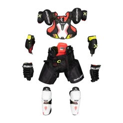 Bauers S22 Vapor Xtend YTH KIT 22/23 er et sæt justerbare skulderpuder, anatomisk formstøbt albuebeskyttelse, justerbart benskinne og justerbare bukser.
